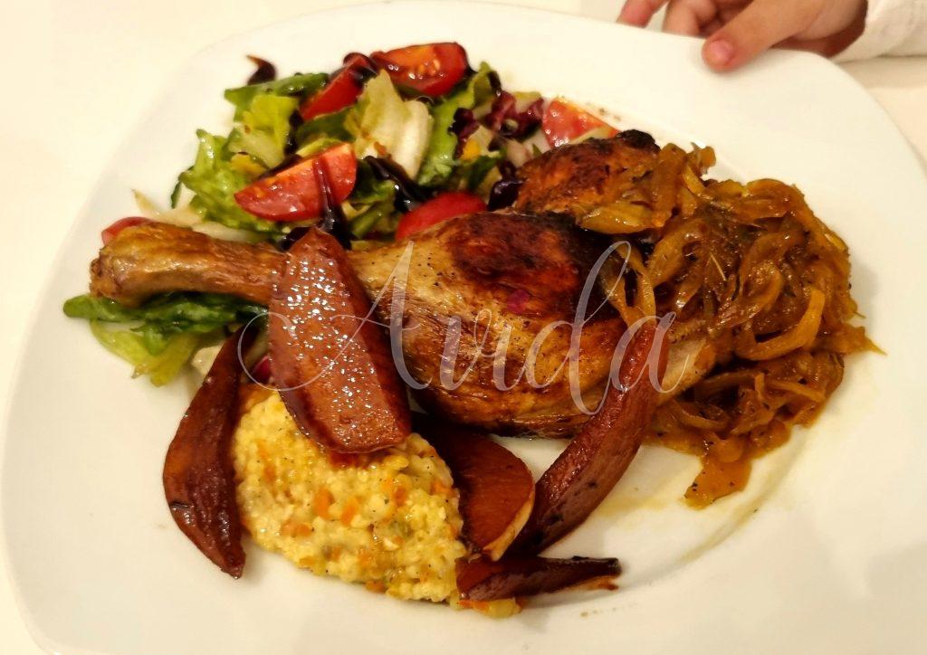 Cușcușul, un acompaniament tradițional nord-african, completează această experiență culinară cu o textură fină și o ușoară notă de nuci, oferindu-i preparatului o consistență delicată și o savoare unică.